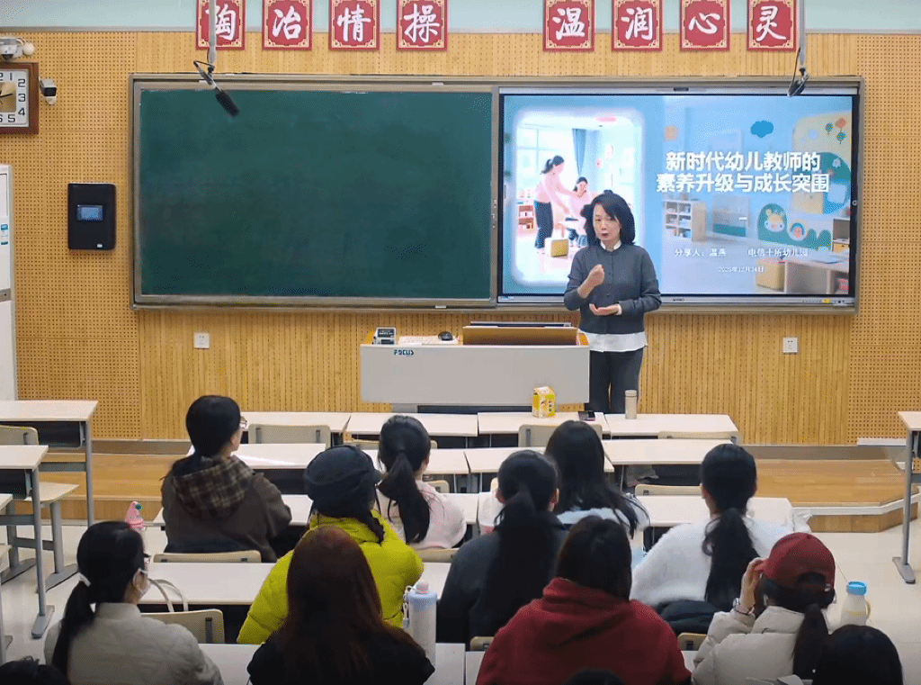 电信十所幼儿园园长温燕、雁塔一幼园长蒋瑜面向学前教育专业本科生开展专题分享。温燕园长围绕幼儿园教师核心专业素养,阐释了专业基础、保教知识与技能在幼儿终身发展中的重要作用。蒋瑜园长以教育家精神在幼儿教育实践中的具体体现为基础,激励学子既要坚守育人初心、涵养高尚师德,也要锤炼专业本领、潜心钻研保教,更要践行仁爱之心、勇于担当风险,将教育家精神融入日常保教垫底,争做新时代卓越幼儿教师。
